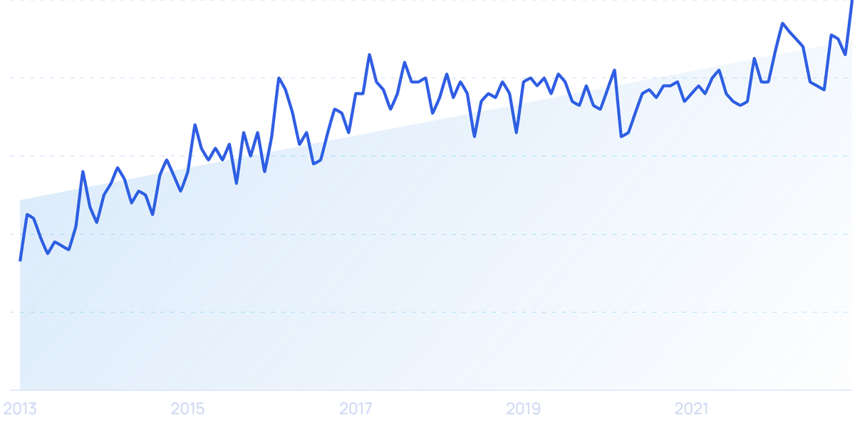 Searches for “Tesla” have risen 100% over the last 5 years.