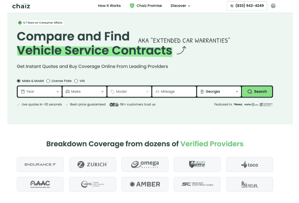Chaiz is a consumer-facing marketplace that allows users to select the best warranty protection program for their vehicle.